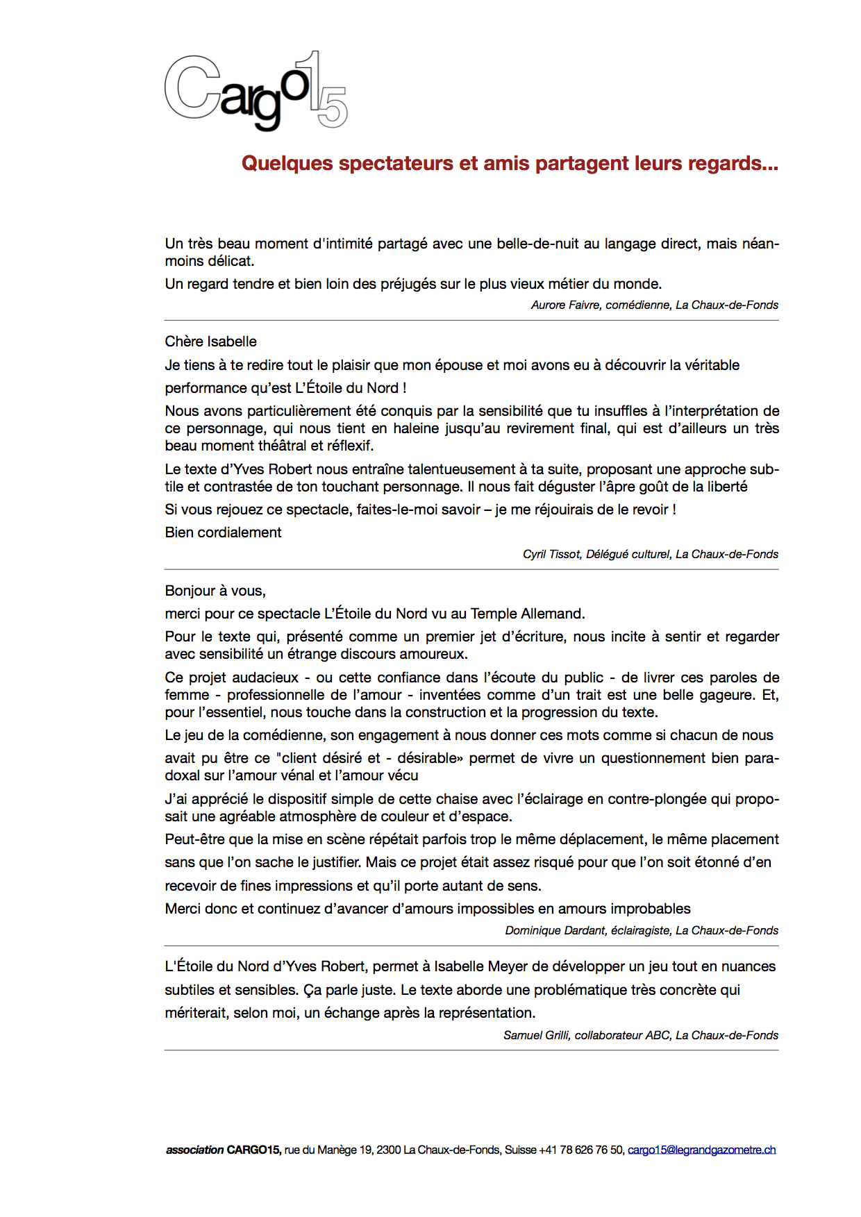 | bureau________________ rue du Manège 19___2300 La Chaux-de-Fonds___Suisse___+ 41 78 626 76 50___ contact@cargo15.ch | |||